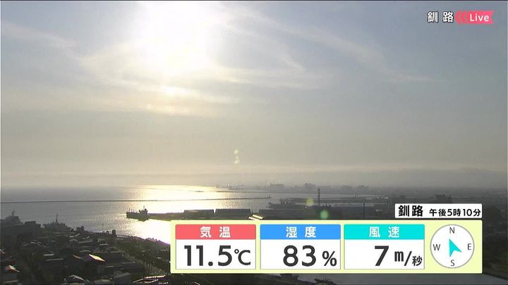 釧路では日ざしはありますが、遠くの方は霧がかかっているようです。
