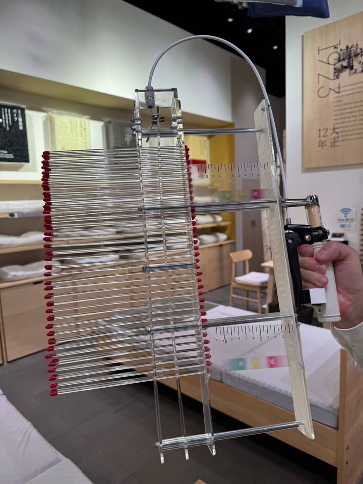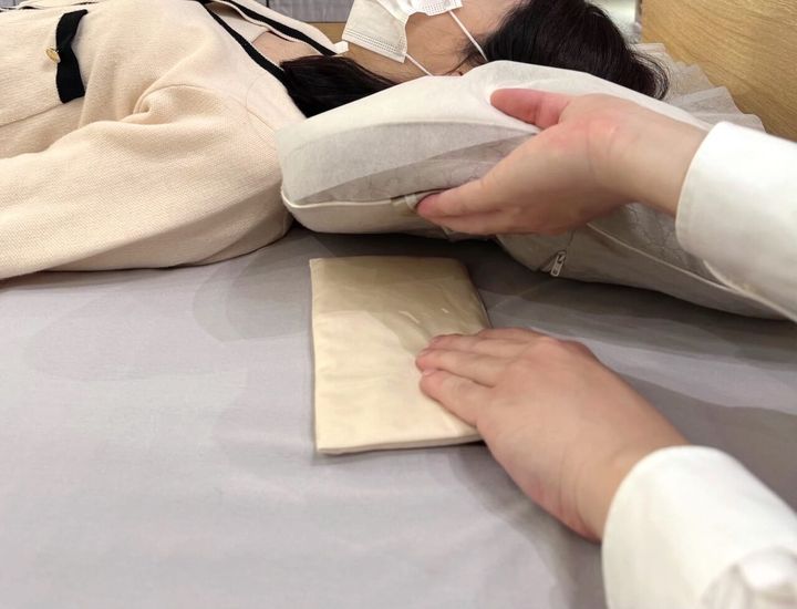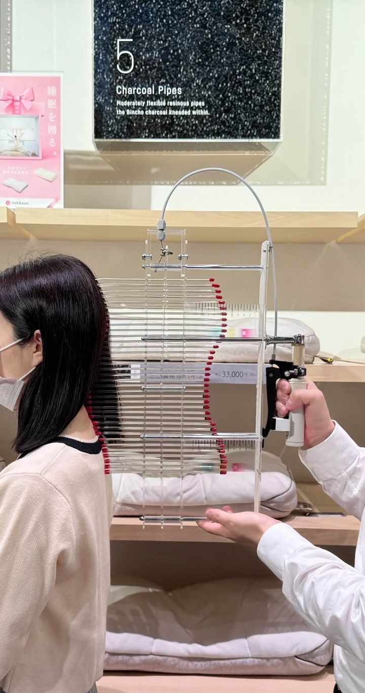 後頭部から首にかけてのS字ラインを測ることによって、自分のカラダに合った枕の高さを割り出してくれます。スリープマスター曰く、高さの合わないまくらを使い続けると、肩こりや頭痛、いびきだけでなく、顔のむくみや首のシワを誘発することになるそう…! 毎日のスキンケアや美容医療と同じくらい、まくら選びが大切なことを痛感しました。