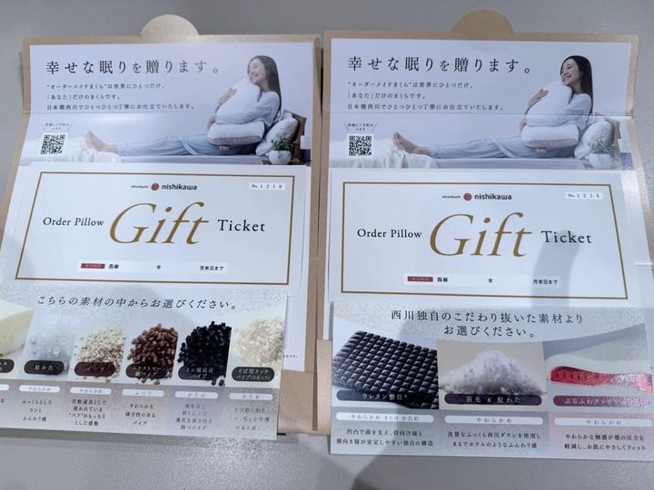 健康に直結する「まくら」は、年齢を重ねた両親や家族へのプレゼントにもぴったり。大切な人の快眠サポートとして、オーダーまくらギフト券を贈ってみては? ※ギフト券の購入・引換は「日本橋西川」の日本橋本店または広尾プラザ店のみとなります。