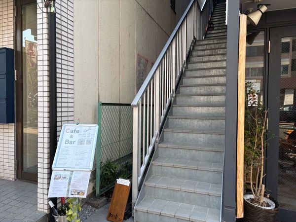 入り口は少しわかりづらくて通りすぎてしまいがちですが、1階にある韓国料理屋さんの脇に階段があります。その階段を上がっていくと、さらに3階へと続く階段があり、その先にカフェがあります。