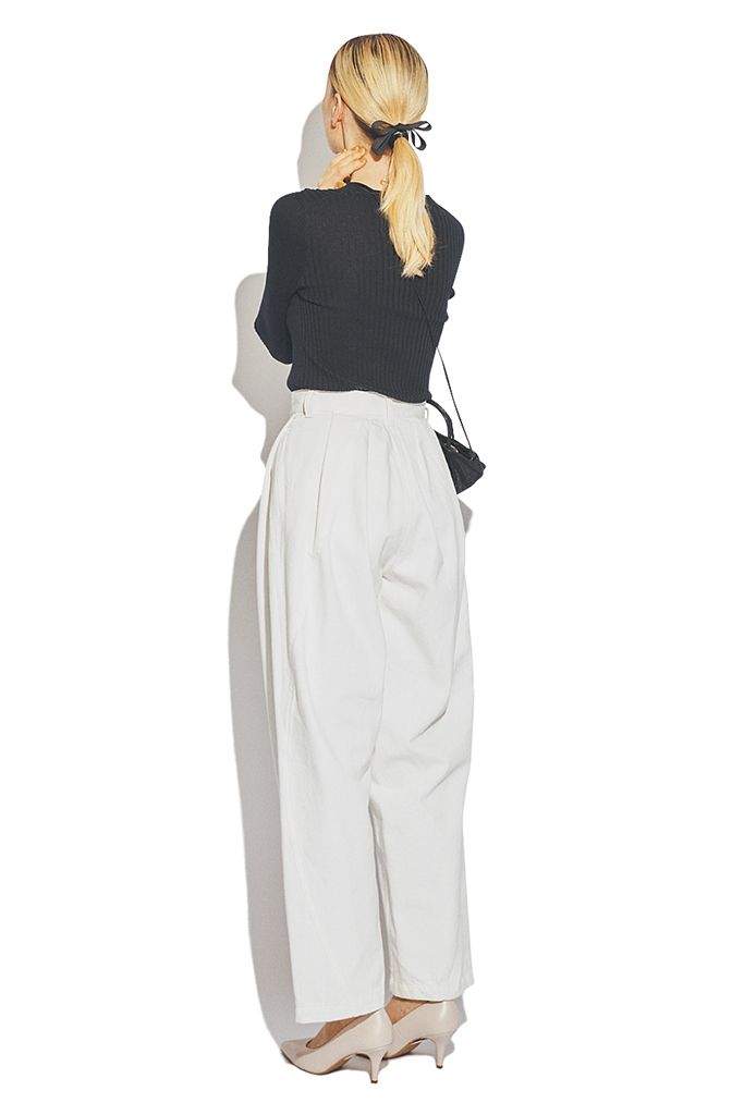 ウエストをキュッと絞った、股上深めのゆったりとしたシルエット。丸みのあるフォルムで肉感も拾わずスタイルアップもかなう。 ハイウエストデニムパンツ/ダブルスタンダードクロージング(フィルム)