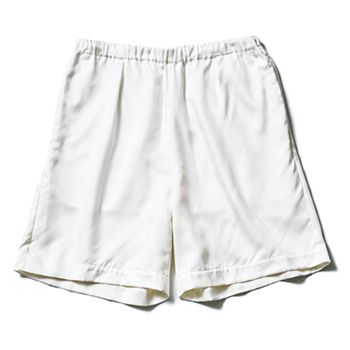白ショートパンツ/BODHI(alpha PR) 上質なシルク素材による、なめらかな肌あたり。従来のシルクの光沢感を少しおさえてマットな仕上がりにしたことで、日常づかいしやすいショートパンツに。