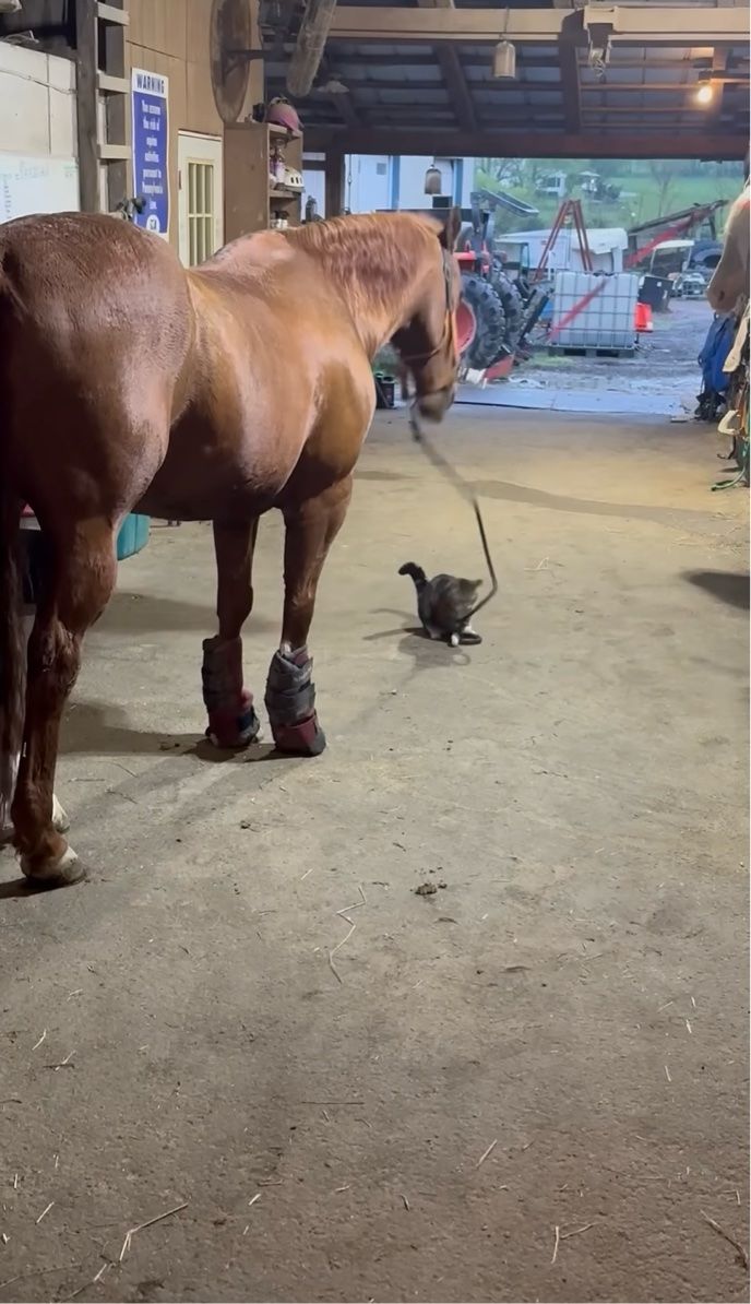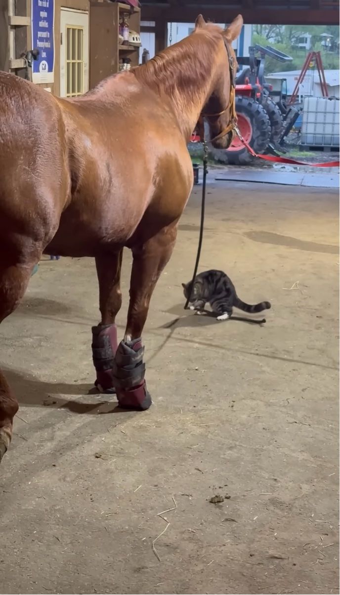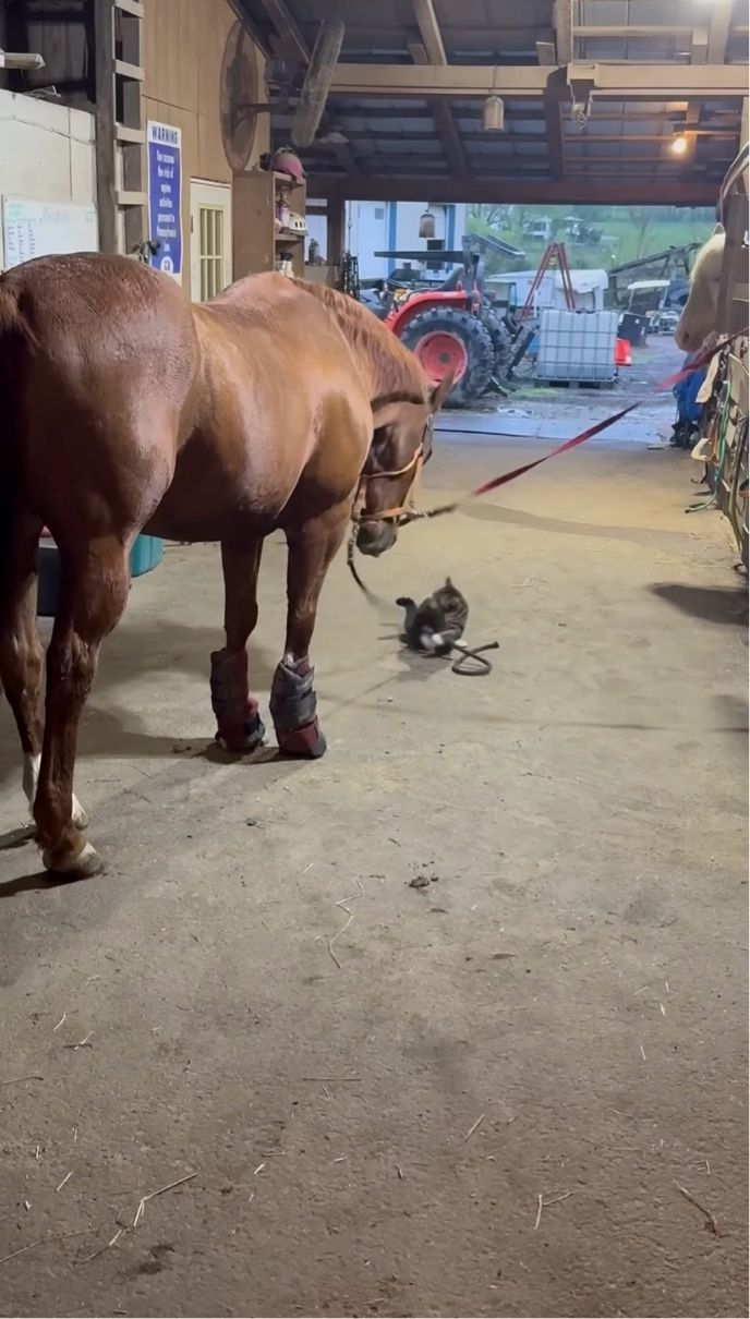 厩舎で目撃された馬とネコのコンビ。 少し離れた位置で様子を観察していた撮影者さんは、驚きのやり取りを目撃しました!