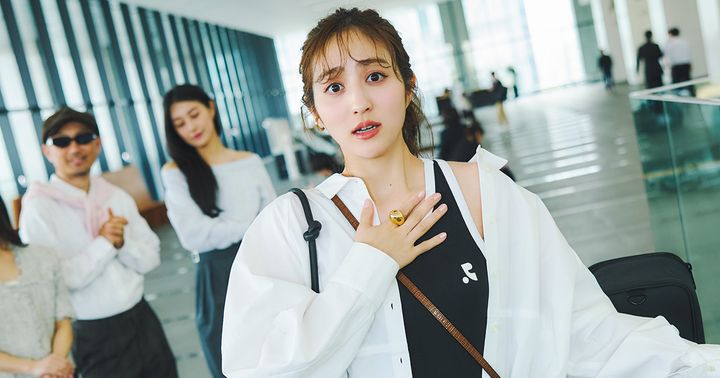 ショルダーバッグ¥15,500(トゥティエ)バッグ¥15,180(イムラム)メガネ¥38,500(SPRING STRINGS/SHOWROOM CHRMR)イヤカフ¥13,200(アルティーダ ウード)リング¥13,200(ラ・スール)スーツケース/スタイリスト私物