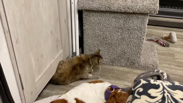 3. 年齢を感じさせない柔軟な猫、ドアのすき間を無音で通過