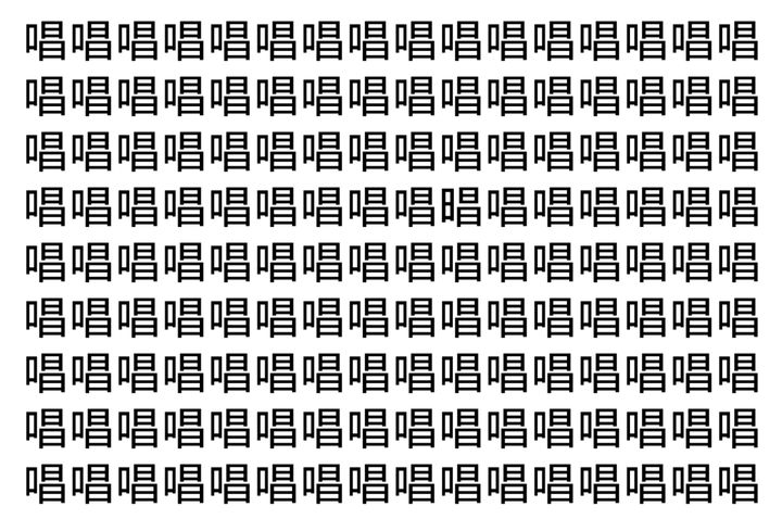画像に並んだたくさんの「唱」という漢字。 その数144個なのですが・・・、実はその中に1つ違う漢字が紛れ込んでいます!!