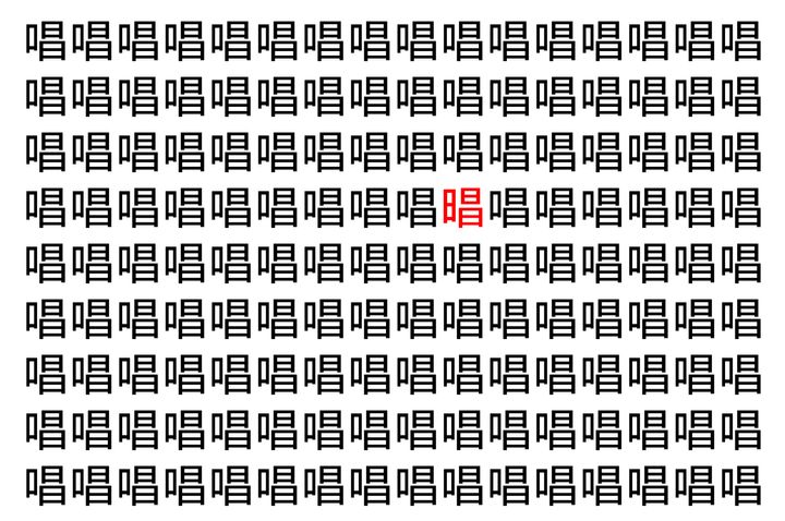画像の中には、「唱」という漢字が縦に9行、横に16個並んでいます。 全部で144個となりますが・・・、そのうち1つは「異なる漢字」となってますよ!!