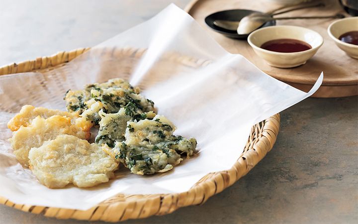 ナレ チヂミをおいしく揚げ焼きするコツは、たっぷり油を使うこと。あと、生地を入れたら触らず放置がポイントです(笑)。あとで一緒にやってみましょう!