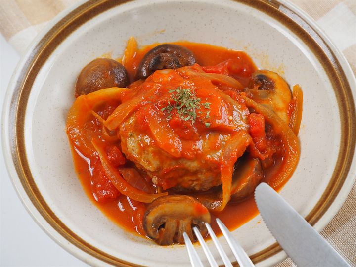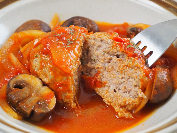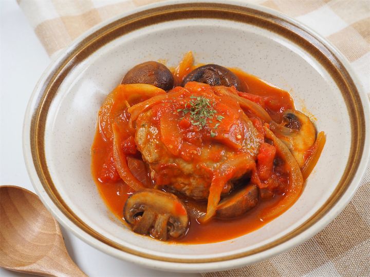 お好みで粉チーズをかければ、さらにコクやイタリアン感がプラスされておいしい。豆腐でかさ増ししながらも、ヘルシーで満足感たっぷりな「豆腐煮込みバーグ」。ぜひ試してみてください!