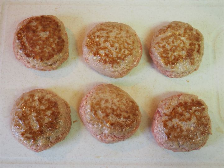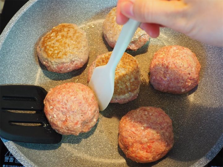7. フライパンまたは鍋に油をひき、6のハンバーグを両面焼き色がつく程度に焼き、一度取り出しておく。