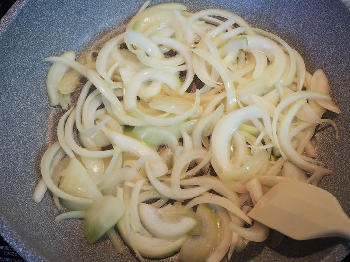 8. 7のフライパンに3の玉ねぎを入れ炒める。
