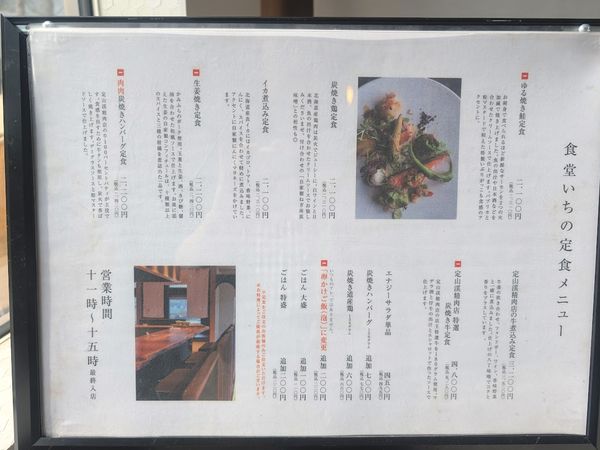 建物に入ると左手に『一(イチ)』と書かれたのれんが目に飛び込んできました。その手前にはメニューボードがあります。どれもおいしそう。