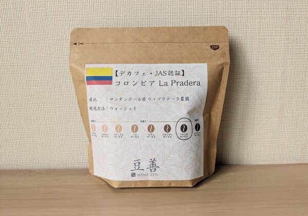 豆善「コロンビア・サンタンデール県・ラ・プラデーラ農園・デカフェ」
