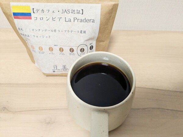 自家焙煎珈琲店でおすすめなのが豆善「コロンビア・サンタンデール県・ラ・プラデーラ農園・デカフェ」。