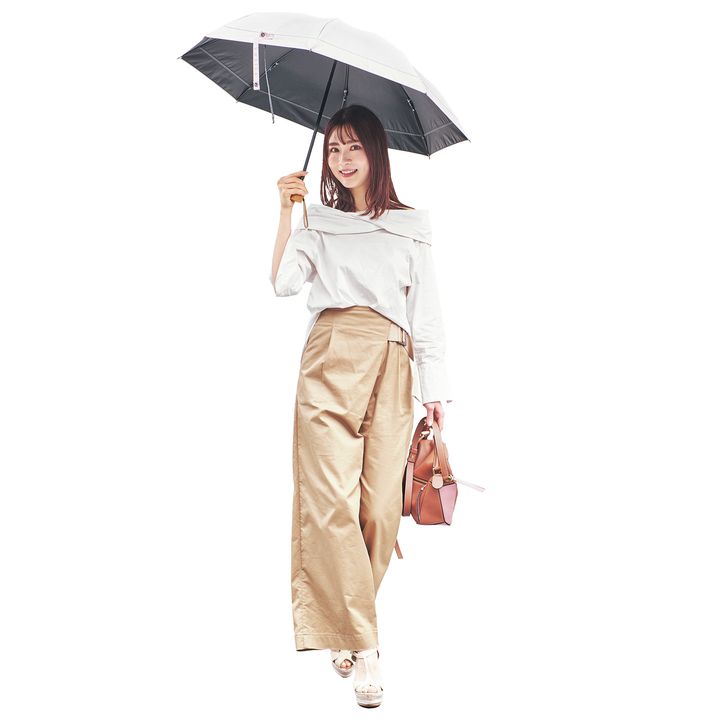 モデルをしているので、日焼けは絶対NG! 年中持ち歩いている芦屋ロサブランの日傘は淡いピンクベースでフェミニンなのに、100%の完全遮光が◎。春夏に毎年したくなる肌見せスタイルも日傘で影を作れば怖くありません。最近は石井美保さんのルミエージュというビタミンCのサプリで、内側からも徹底ケア。