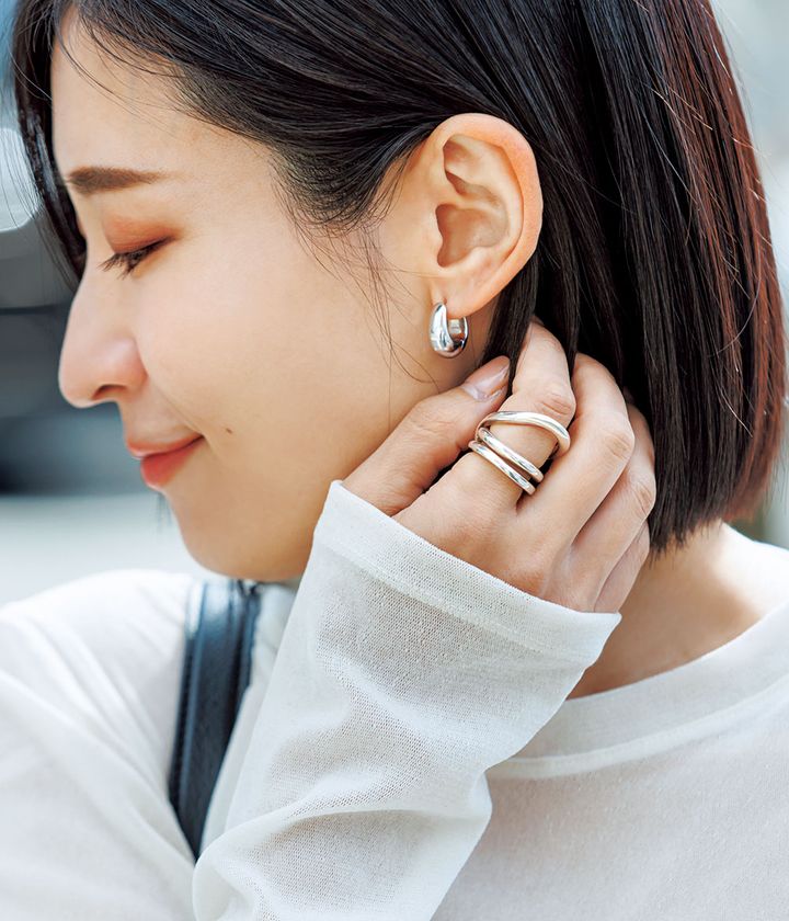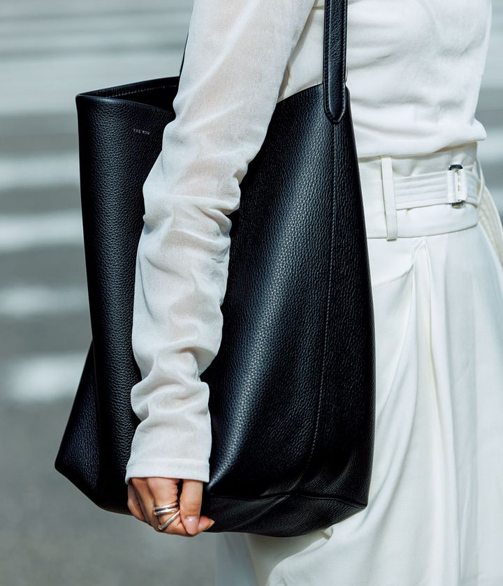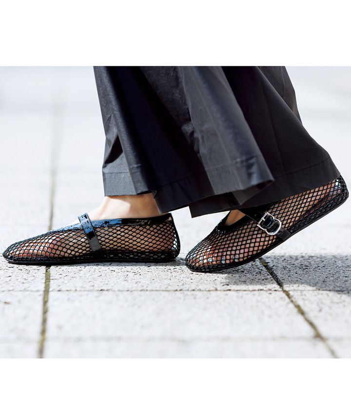 ブランドを立ち上げて2年経ち、ますますシンプル化が加速。とはいえ、程よくモード感や女っぽさは取り入れたいから、素材感でバランスを取るようにしています。女っぽさや甘さをちょこっと出したいときはシアートップスを取り入れるのが得策。「シンプルなのに、ちゃんと今っぽくオシャレに見える」のが要。洋服がシンプルだからこそ、靴はトレンドとモード感のあるものが好きで選びがちです。