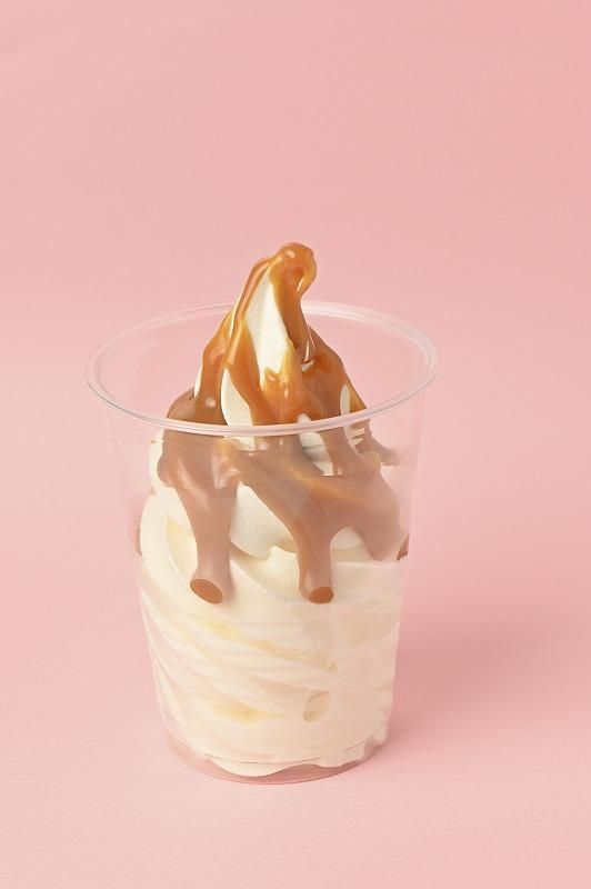 濃厚ソフトクリームに熱々の生キャラメルクリームをたっぷりとかけます。ソフトクリームの味もお選びいただけます。