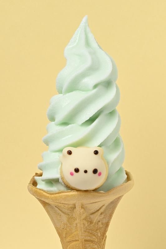 シレトコらうす深層水自然塩のミネラル豊富なラウシップ使用!ひんやりかわいい白クマを乗せた流氷ソフトクリーム。