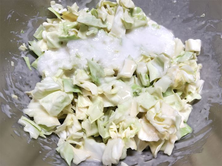2. 1にキャベツを入れて混ぜます。