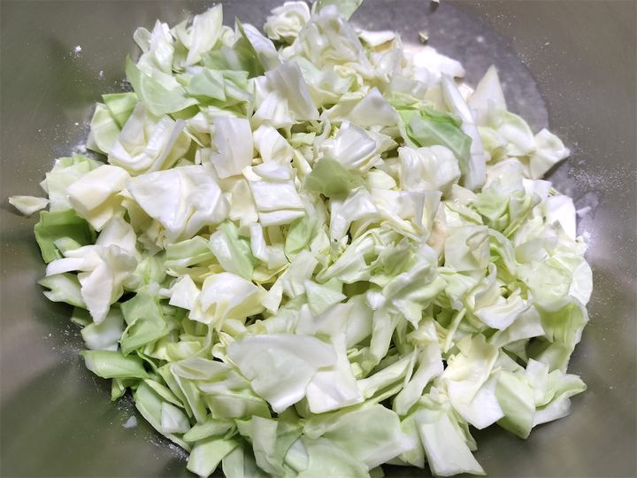 キャベツ:1cm角くらいに細かく切ります。