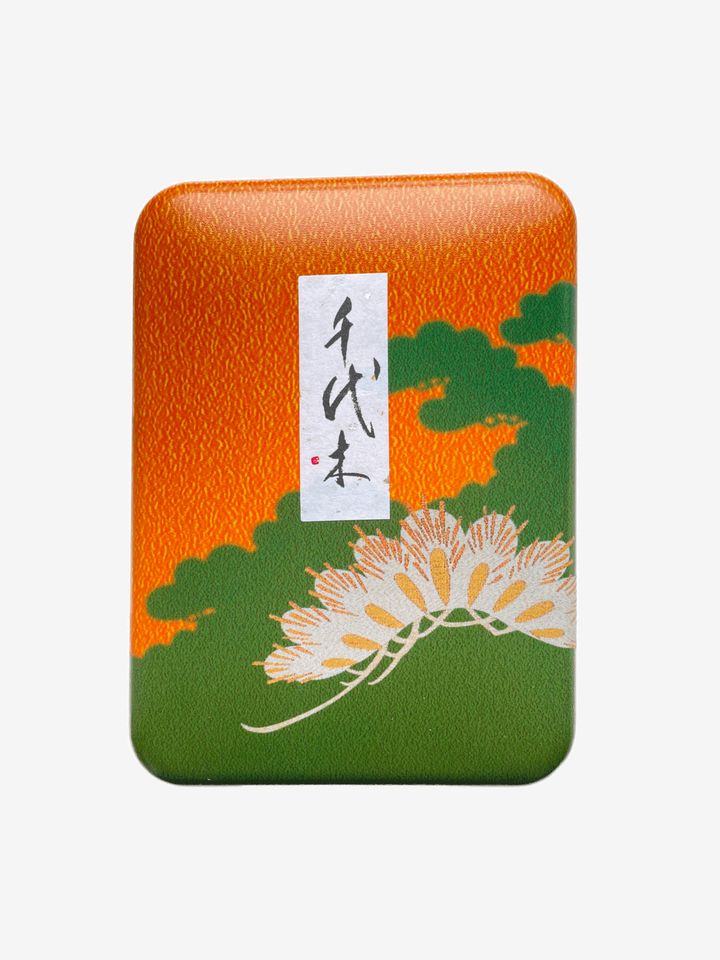 帰りがけにショップをのぞくと、おしゃれな和の缶が。早速買い求めたところ、これがまぁ、お品がよろしい。缶の中には、松葉の形(といっても、よく見ればだけど)のぼうろが2本、美しい紙に巻かれて10組鎮座する。千代木とは松のことだそうで、「永遠に変わらない」象徴。とにもかくにもめでたいお菓子だ。おいしいお茶とゆっくりいただきたいが、コーヒーとも相性がいい。