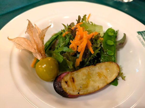 福島県郡山周辺のこだわり農家さんの味わいの強い野菜を創業者カンタトーレ氏直伝のリンゴのドレッシングソースでいただきます。このトマトのような実はホオズキです。めっちゃ甘くてフルーティー。びっくりです!