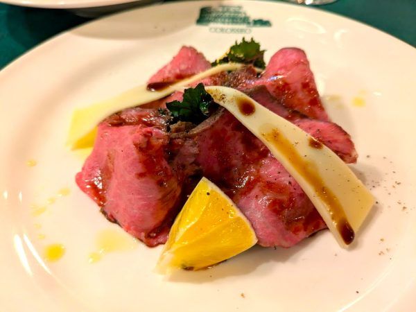 上質な脂の旨味が特徴的な山形牛を低温で調理しカルパッチョ仕立てにし、白糠酪恵舎のトーマ・シラヌカチーズと共にいただきました。