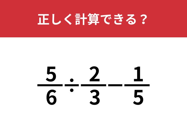 分数の計算ってどうやるんだっけ?「5/6÷2/3−1/5」正しく計算できる?