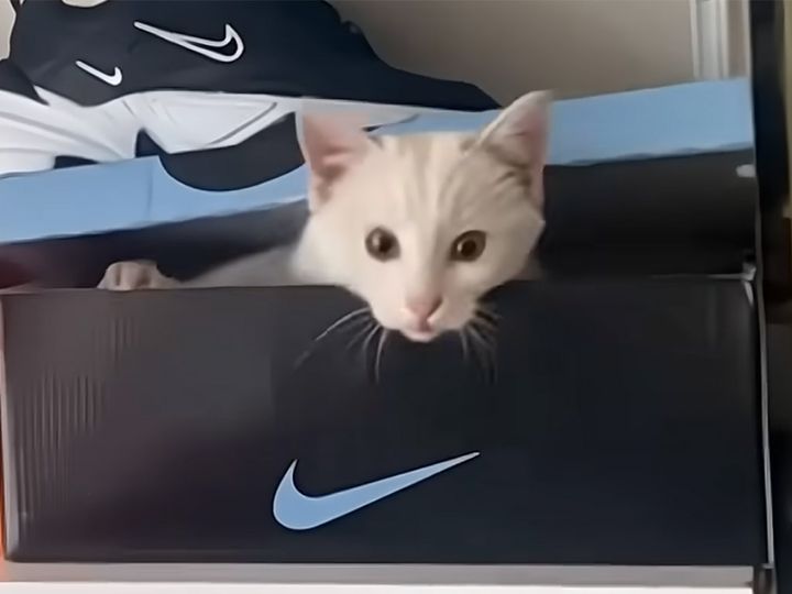 「サイズ測った?」 と思うほど靴箱にぴったり! フィット感を楽しむ子猫さん