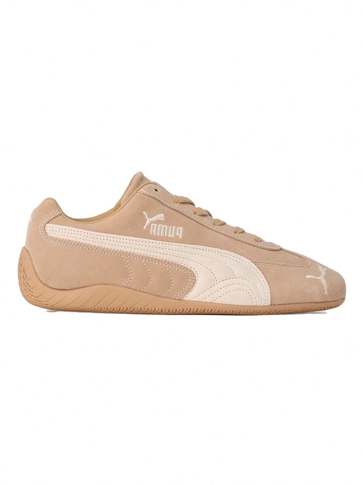 ローテクスニーカー人気は、2025年春夏も継続中だ。グッチGUCCI)は、グレーのテーラードルックに白スニーカーを合わせ、クリーンで都会的なコントラストを演出。ミュウミュウMIU MIU)は、パティーナ加工を施したバーガンディ×ネイビーのモデルで、履き込んだようなヴィンテージ感を漂わせた。