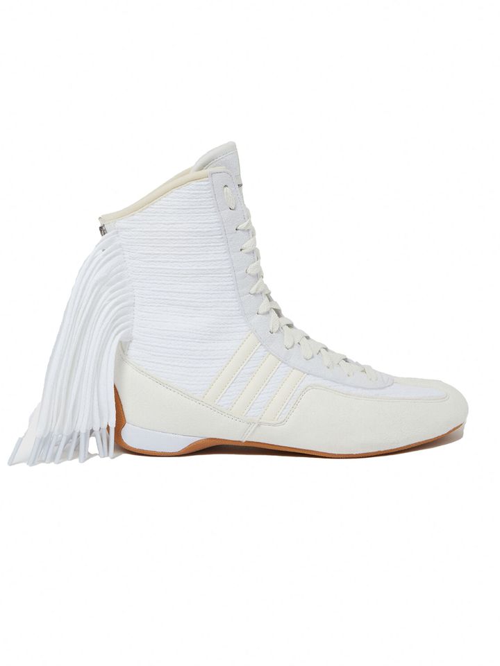 一方で、ステラ マッカートニーSTELLA McCARTNEY)は、ボクシングシューズのシューレースをフリンジに見立てた大胆なデザインで、存在感を発揮。ジョナサン・アンダーソン率いるロエベLOEWE)は、人気の「バレエランナー」にハイトップ仕様を加え、シリーズに新たな表情をもたらした。