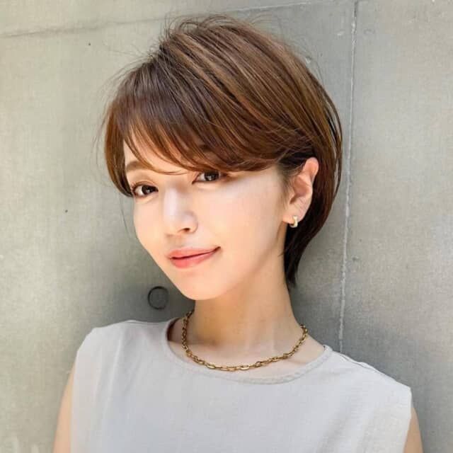 次におすすめなのが、柔らかな丸みを活かしたフォルムのスタイル。特に頬骨からあごにかけてやさしく包み込む“ひし形シルエット”は、小顔効果も狙えるスタイル。直線的なショートよりも女性らしく、ふんわりとした優しげな印象に仕上がるのがポイントです。