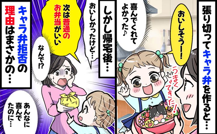 ある日、5歳のわが子に特別なお弁当を作ってあげようと張り切りました。普段は簡単に作ることが多いので、キャラ弁に挑戦しようとインターネットでかわいいキャラクターのお弁当を検索。見た目は完璧に仕上がり、子どもも「これおいしそう!」と喜んでくれたのですが……。