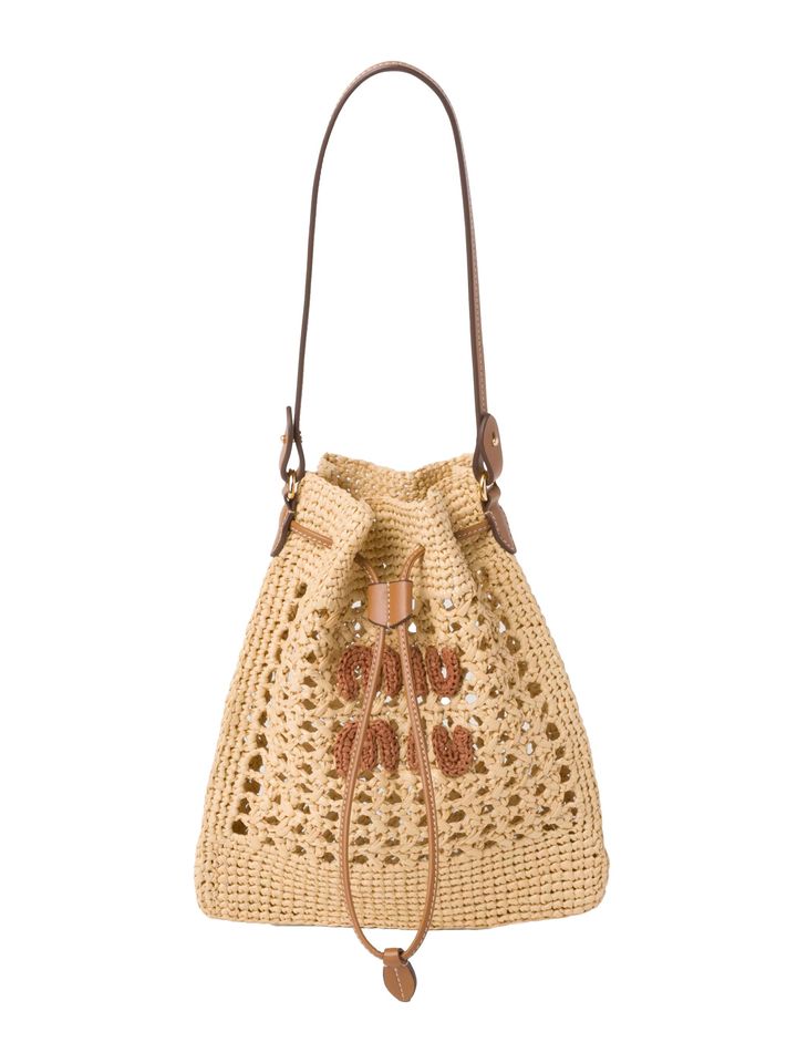 素朴なかぎ針の透かし編みで、モダンなスクエア型のトートバッグを仕立てたのはプラダPRADA)。どこかなつかしい風情のバッグのフロントには、ブランドのアイコンであるトライアングルを配置。刺繍のレタリングロゴが、やさしい雰囲気をきりりと引き締める。バッグの中身が見える透かし編みだからこそ、入れる荷物の色彩や、インナーバッグの柄にこだわりたい。