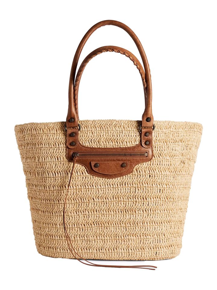 2000年代のバレンシアガBALENCIAGA)を代表する「ル・シティ」が、フロントのジップやジッパープル、スタッズパーツといった特徴はそのままに、かごバッグとして登場。ラフィア素材のボディに組み合わせたハンドルやフロントジップ部分には、ランダムなシボ感が美しいアリーナラムスキンを採用。大胆なボタニカルパターンのコーディネートで、夏のリゾートを歩きたい。