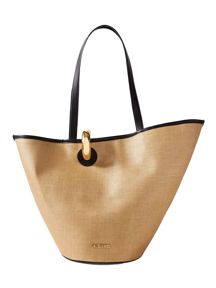 2025年春秋トレンドのキーワード、“アンシンメトリー”。左右非対称の美しい曲線が生み出すユニークなフォルムは、独特なカッティングとシルエットを得意とするジャックムスJACQUEMUS)ならでは。きっちりと編まれたフェイクラフィアの光沢と、ブラックレザーのハンドルというシンプルなデザインで、装飾はオープントップのマグネットのみ。流れ落ちるように描くシックなボディラインは、オフィス使いにも対応する。