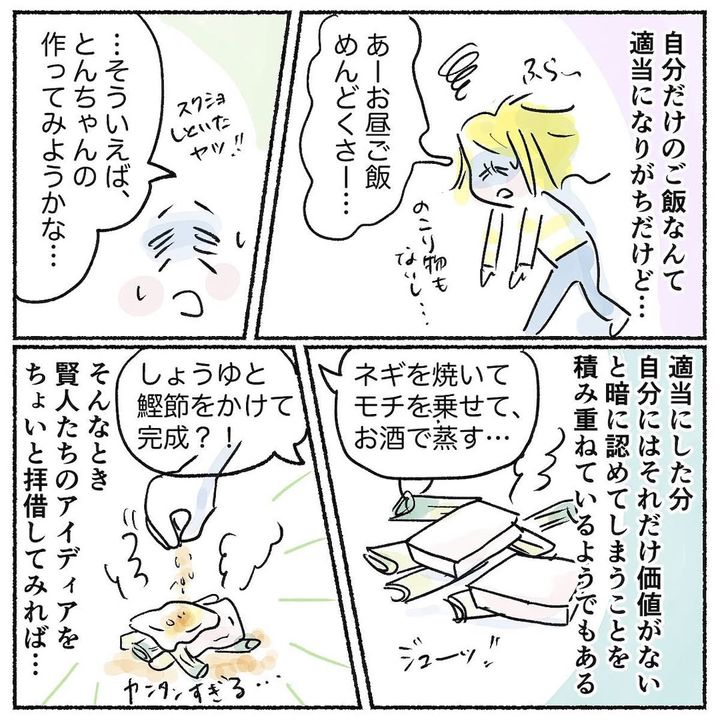 こんにちは!4児の母で漫画家兼公認会計士のAyumiです。疲れているときって、自分のご飯が疎かになりがちですよね。それでもお腹は空くもので、なにか簡単でウマい飯はないものか…。ということで、Instagramで話題のとんちゃんレシピから「ねぎ」と「餅」を使った一品を試してみたら、もう大大大成功!味付けはかつお節としょうゆだけなのに、とっても幸せな気分になれたんです。ぜひ、お試しあれ♪