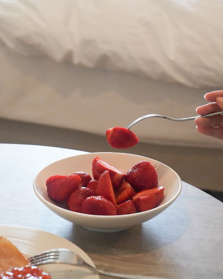 ホテルの一室なのに、まるで自分の部屋のような居心地のよさ。みなとみらいの街を眺めながら、心まで満たされる朝ごはんの時間でした。