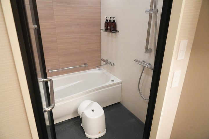 バスタブもゆったりとしたサイズ感で、旅の疲れをゆっくりと癒せる空間。高級感のある素材感とシンプルながら洗練されたデザインが、ホテルならではの非日常を感じさせてくれました。