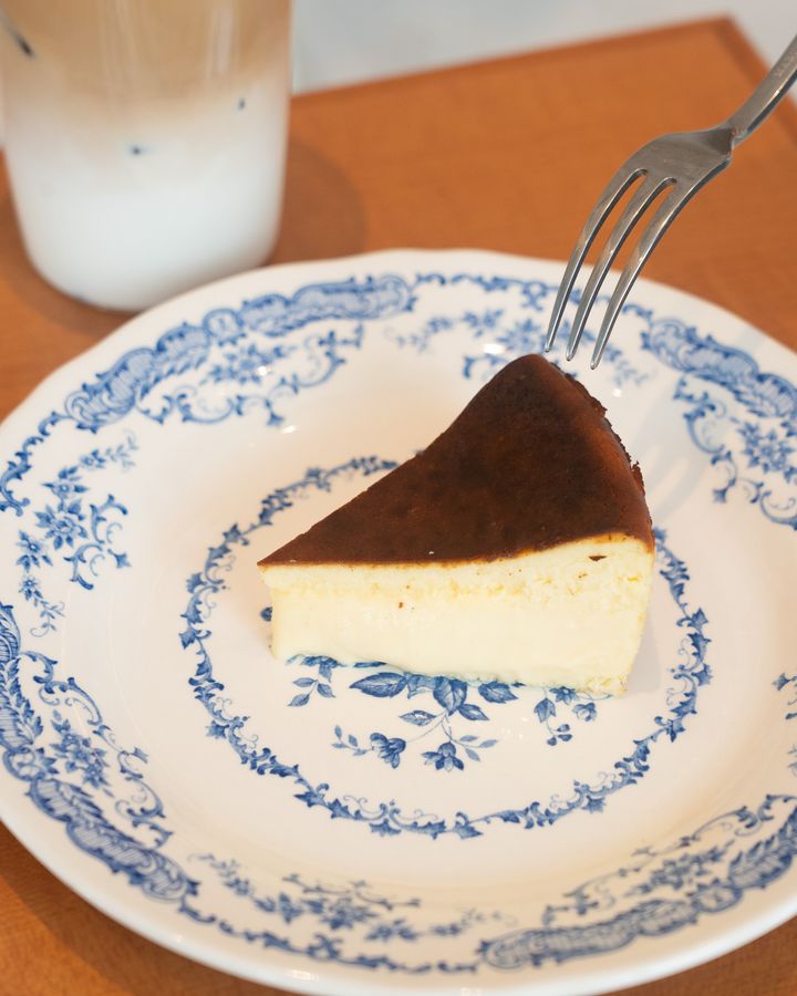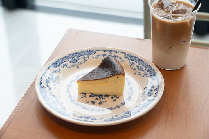 そこでいただいたバスクチーズケーキは、期待以上の美味しさ!しっとり濃厚でクリーミーな舌触りに、ほどよい甘さとほろ苦い焦げ目の香ばしさが絶妙にマッチ。口の中でとろけるような食感が心地よく、コーヒーとの相性も抜群でした。