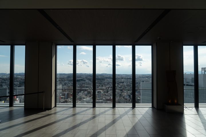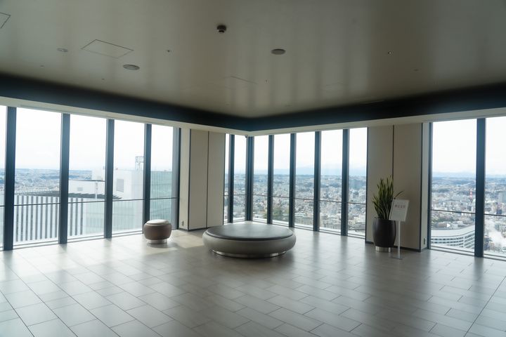 空気が澄んでいる日には、遠く房総半島や富士山まで見渡せるそう。まるで展望台に来たかのような絶景が、ホテルのロビーという日常空間の中にあることに、しばらく立ち尽くしてしまいました。