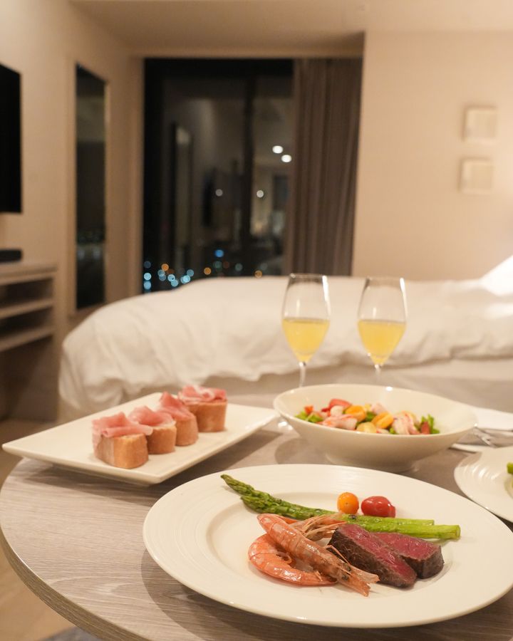 自分で作った料理を、素晴らしい景色とともに楽しむ。そんな贅沢な時間を過ごせるのも、オークウッドスイーツ横浜ならではの魅力です。