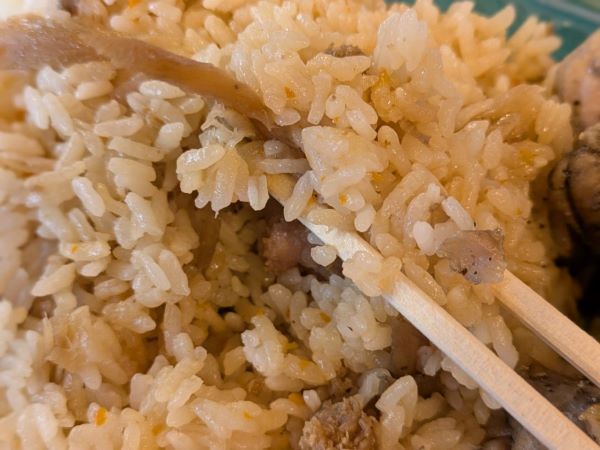 鶏めしにはごぼうや人参、こんにゃくも入っていて満足度の高い一品。こちらの地鶏は甘めの味付けで、炭火焼きとはまた違う味を堪能することができました。