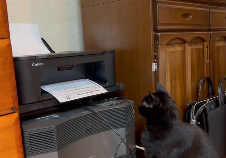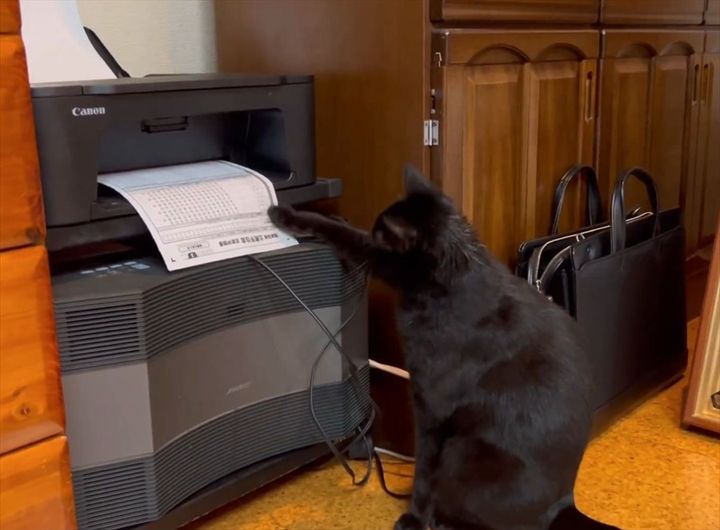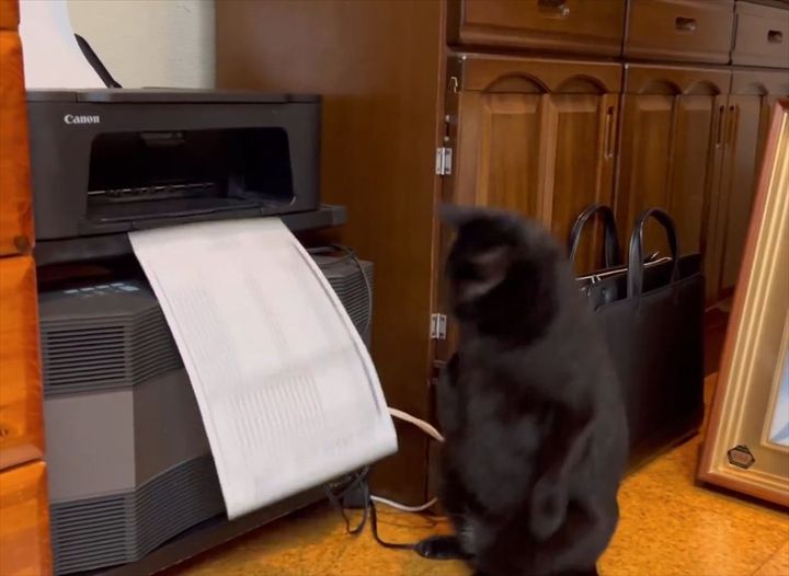 コピー機の最前列をキープしていたネコ。 印刷されていく用紙を見つめているその結末が話題を呼んでいます。