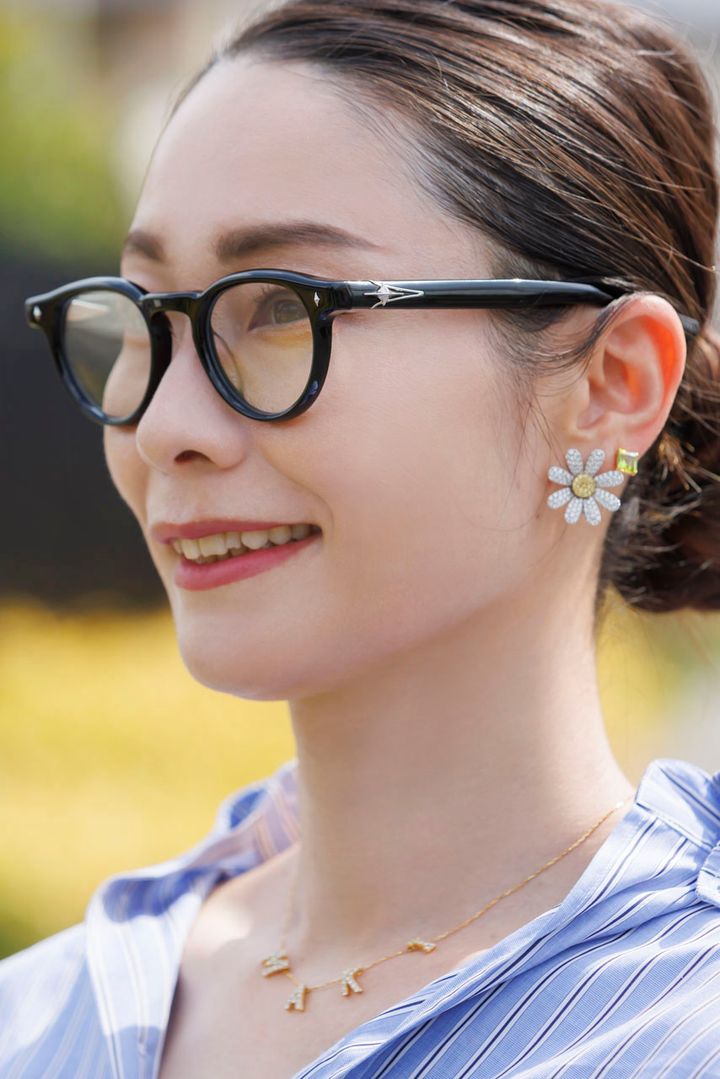 前から欲しかったデニムはようやくマイサイズに出合えて購入したお気に入りの一着。膝に入った大きめな白のアナグラムがポイントです。デイリーに取り入れやすいアイテムが多いので、ショップに行くと必ず洋服もチェックするようにしています。ランチの日はシアーブルゾンを羽織って軽やかにまとめます。