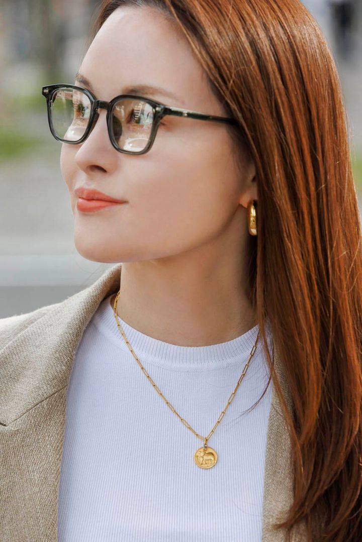 使いやすいのに一癖あるところが個性的で好き。Tシャツはロゴが白なので目立ちすぎないところが気に入っています。キラキラとトイヒールに惹かれたパンプスが華やかなので、あえてデニムスタイルに合わせてシンプルに。どちらも昨年8月LAに旅行に行った際のアウトレットで購入した思い出の品。