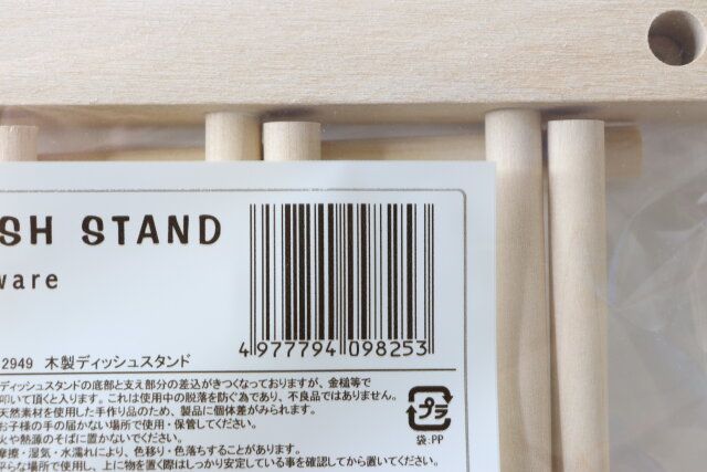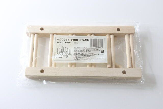 今回ご紹介するのは、セリアのキッチングッズ売り場で見つけた『木製ディッシュスタンド』という商品。