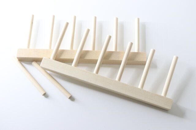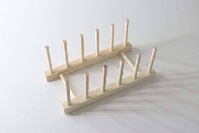 食器を立て掛けて収納できる木製のディッシュスタンドです。