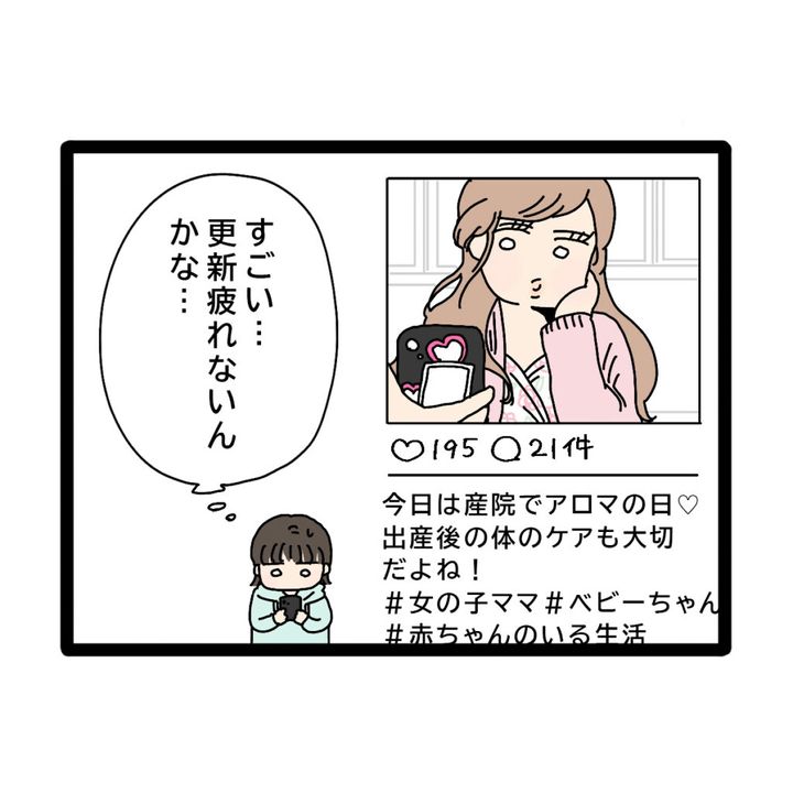 きみこのSNSには、「今日は参院でアロマの日。出産後の体のケアも大切だよね! #女の子ママ #ベビーちゃん #赤ちゃんのいる生活」と投稿が。「すごい・・更新疲れないんかな・・」と逆に心配になりました。