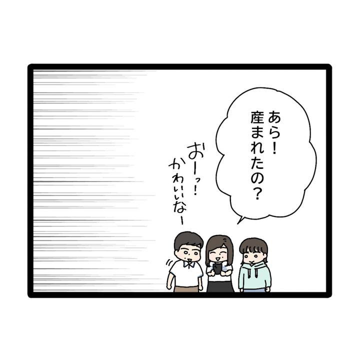 「あら!産まれたの?」とお母さん。お父さんもやって来て、「おーっ!かわいいなー」とみんなでスマホを囲みました。